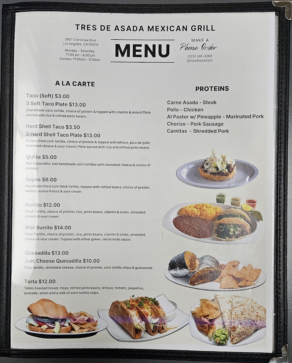 Welcome to Tres de Asada Mexican Grill, a culinary gem nestled in Los Angeles on S Crenshaw Blvd. This vibrant eatery serves a delectable array of authentic Mexican cuisine, perfect for both meat lovers and vegetarians alike.